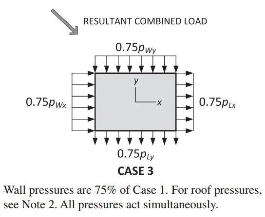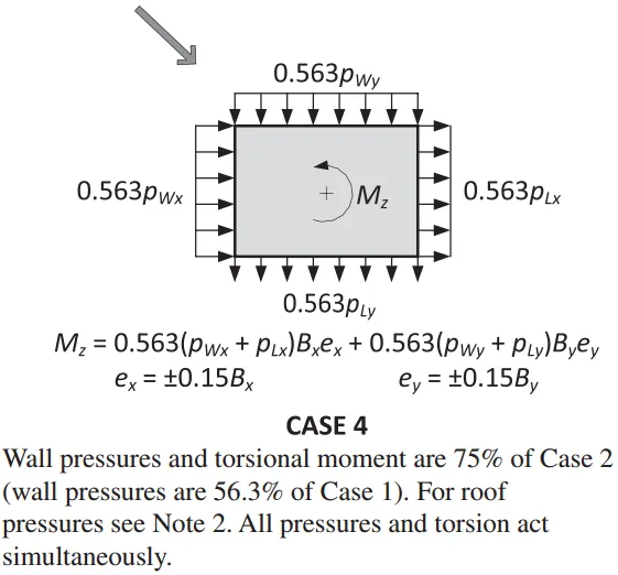 | 荷载模式: 荷载模式3的75%风压+扭转力矩→考虑斜向风+扭转组合,是最不利的情况 适用角部效应显著的建筑 |