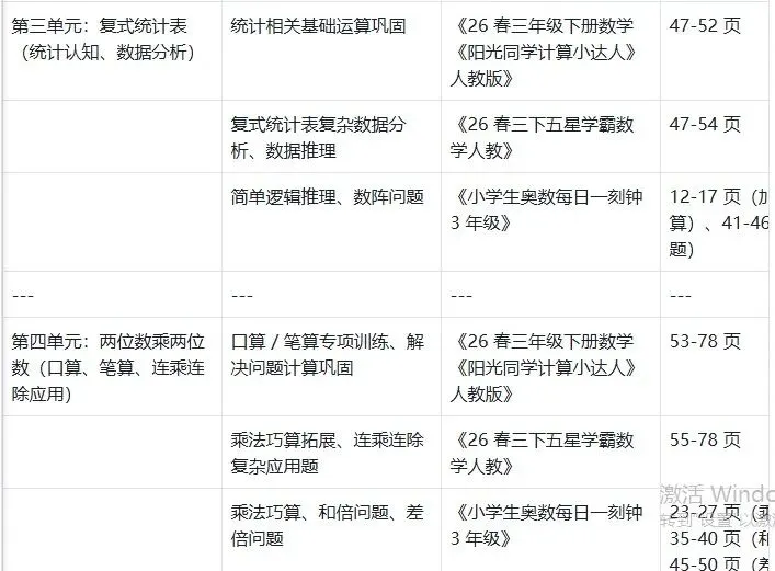 • 第三单元"复式统计表",在《计算小达人》的47-52页是基础运算巩固,在《五星学霸》的47-54页是复杂数据分析