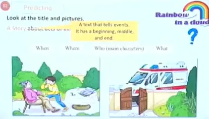 文本导入:聚焦story的结构,回应U2writing中学过的beginning,middle、end以及when,where,who, what。看图片预测