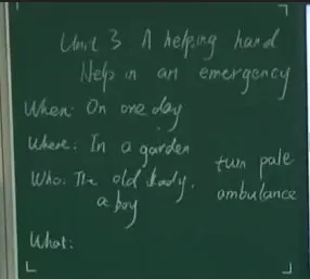 学生讨论,分享,老师板书(解决生词turn pale,ambulance):