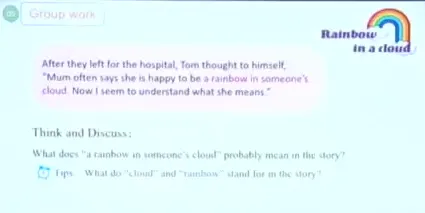 14:01 group work讨论标题含义:what does a rainbow in someone's cloud mean?