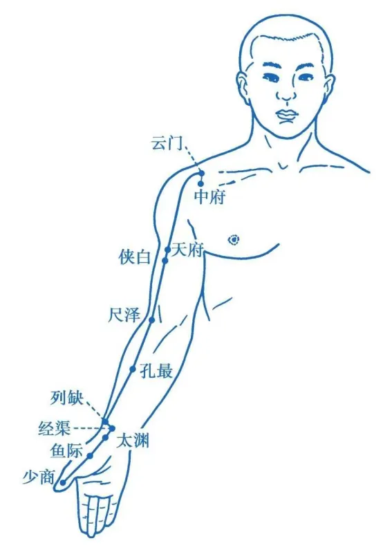 ·五腧穴:少商(井)鱼际(荥)与太渊(输),经渠(经)尺泽(合)肺相连。