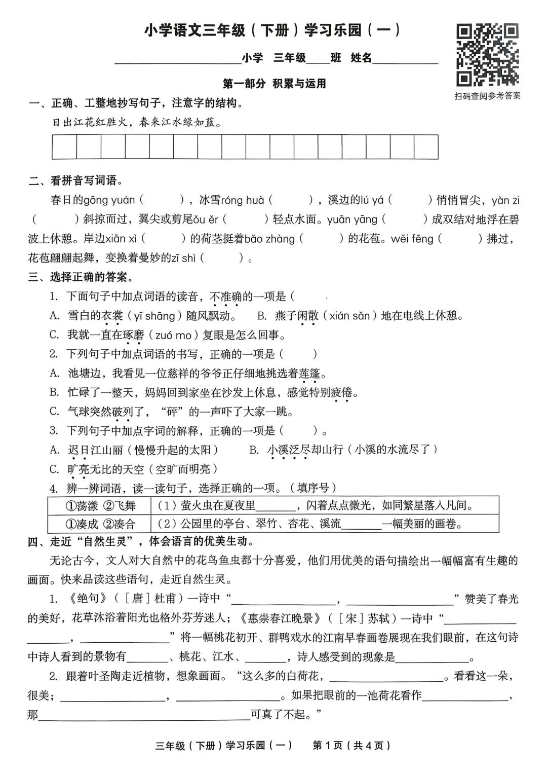 📚2026 春三年级语文下册必备测评资料来啦!《学习乐园单元测试卷》同步教材,单元检测全覆盖💡基础题 + 提升题搭配合理,紧扣校内考点,检测学习效果超精准✅自带完整答案,批改自查超方便,可直接打印使用三年级语文单元复习、查漏补缺、考前练手必备神器💯