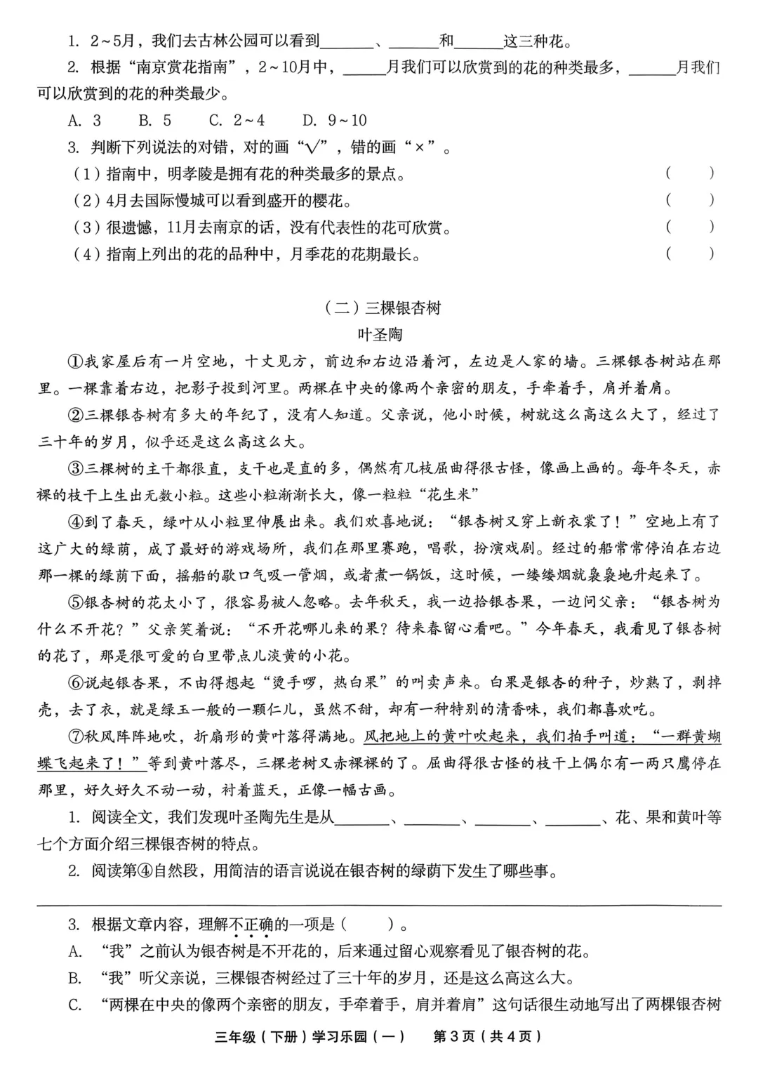#三年级语文下册#学习乐园#单元测试卷#含答案试卷#三年级教辅#小学语文资料#单元复习