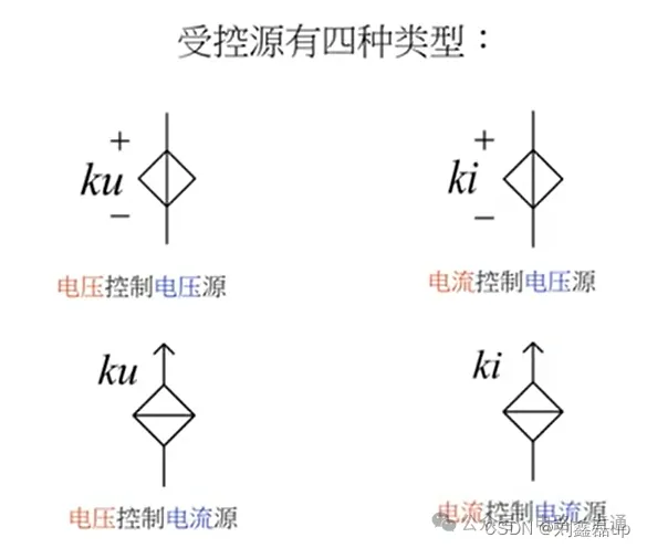 | 电压源U_s:就是能够提供电压的电源 ⓛ 可以是直流源、交流源、还可以是其他形式 | 电压由自身确定,电流由外电路确定 不能短路(滑坡堵住)——>电流无穷大 ↑ 电流源I_s:就是能够提供电流的电源 ⊖ | 电压由外电路确定,电流由自身确定 不能开路(决 堤)——>电压无穷大