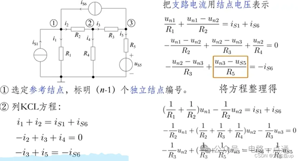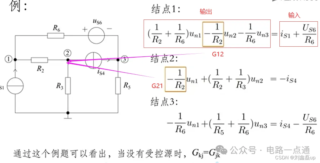 相连的电阻:分叉就要找相关的电阻(为正 自电导);不分叉就是结点之间的(为负 互电导)
