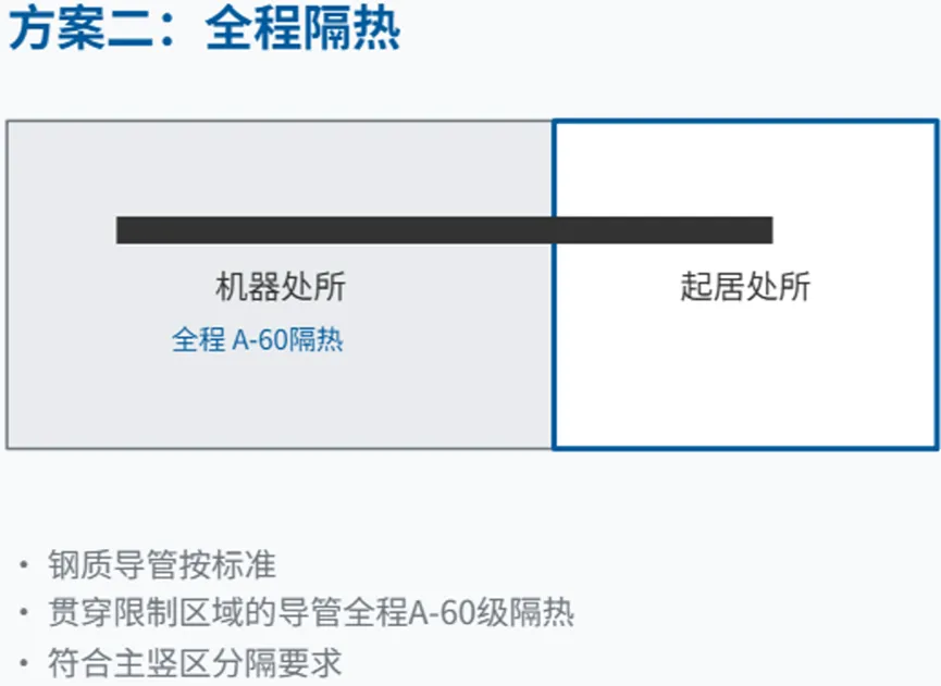 - 全程隔热:贯穿于安全区域(起居、服务、控制站)内的导管全程按 “A-60” 级标准进行隔热。若穿越主竖区分隔,还需符合额外要求。