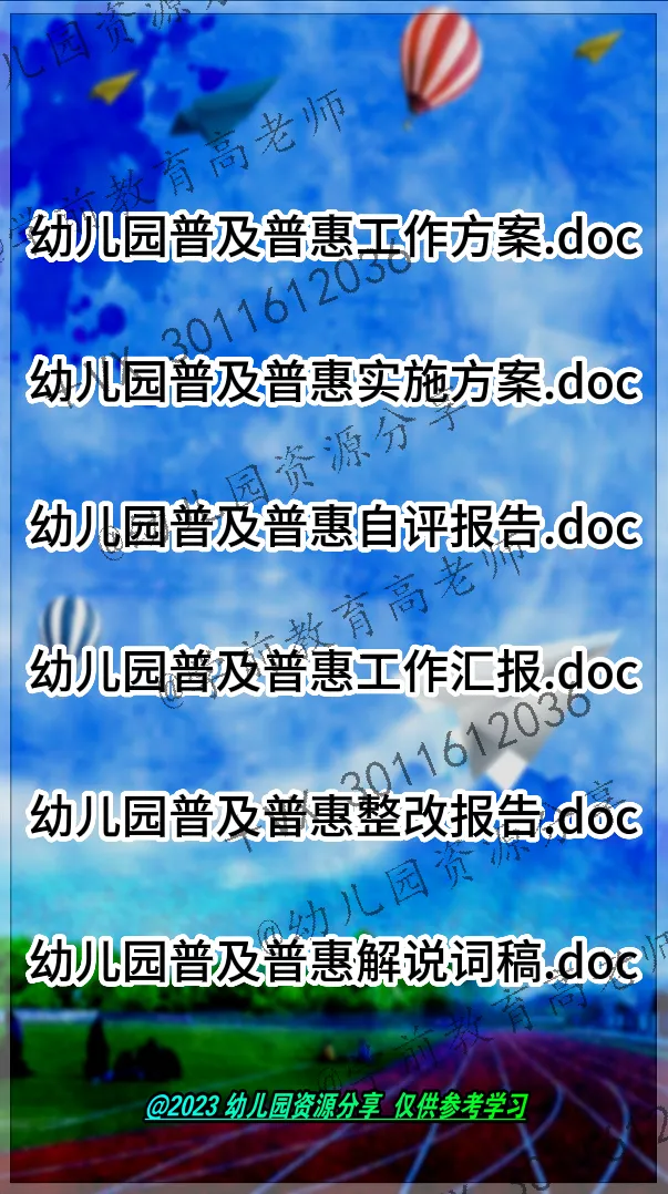 本套资料主要适应于幼儿园普及普惠评估参考学习,分普及普惠、上级保障、保教质量保障情况、社会认可度四大版块。@+VX 3011612036 观测点41个,文件数量403个;具有很强的学习参考作用。