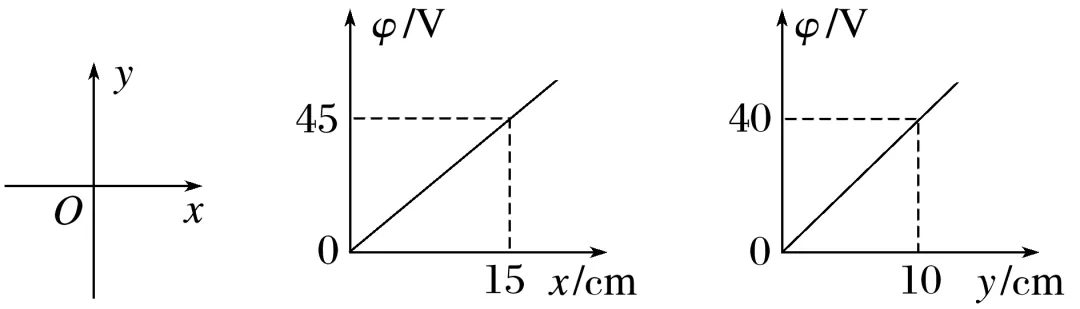 6.(2023·阳江市高二开学考试)空间存在着平行纸面的匀强电场,但电场的具体方向未知,现在纸面内建立直角坐标系xOy,用仪器沿Ox、Oy两个方向探测该静电场中各点电势,得到各点电势φ与横、纵坐标的函数关系如图所示。关于该电场的电场强度E,下列说法正确的是( )