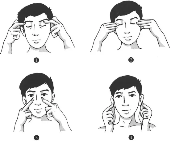 操作方法:两手的大拇指指腹夹住鼻根按睛明穴,垂直地往眼睛深部按,按一下松一下,连续做四个八拍。再用两手拇指背侧按摩双侧攒竹穴,也就是两条眉毛的内侧,眉头起皱的地方。每次2分钟,早晚各1次,长年坚持。