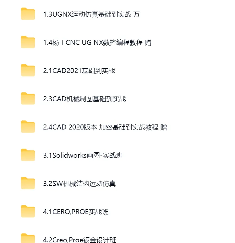 【机械学习资料】非标机械设计学习课程资料CAD+SW+PROE+UG(课件+笔记等)