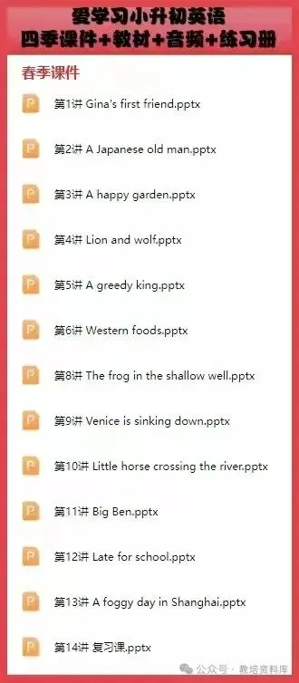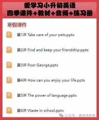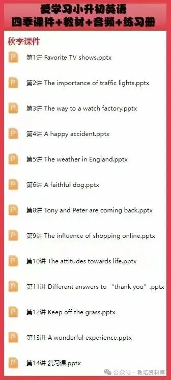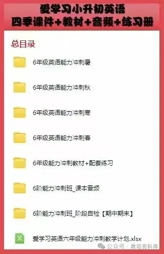 爱学习小升初英语四季课件+教材+音频+练习册(有教学大纲),通用版,