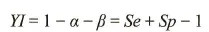 mistake diagnostic rate, α 误诊率,假阳性率omission diagnostic rate, β 漏诊率,假阴性率positive predictive value, PV+ 阳性预测值negative predictive value, PV_ 阴性预测值Youden Index, YI Youden指数,约登指数,正确指数positive likelihood ratio, LR+ 阳性似然比negative likelihood ratio, LR_ 阴性似然比receiver operating characteristic, ROC ROC曲线area under curve, AUC 曲线下面积