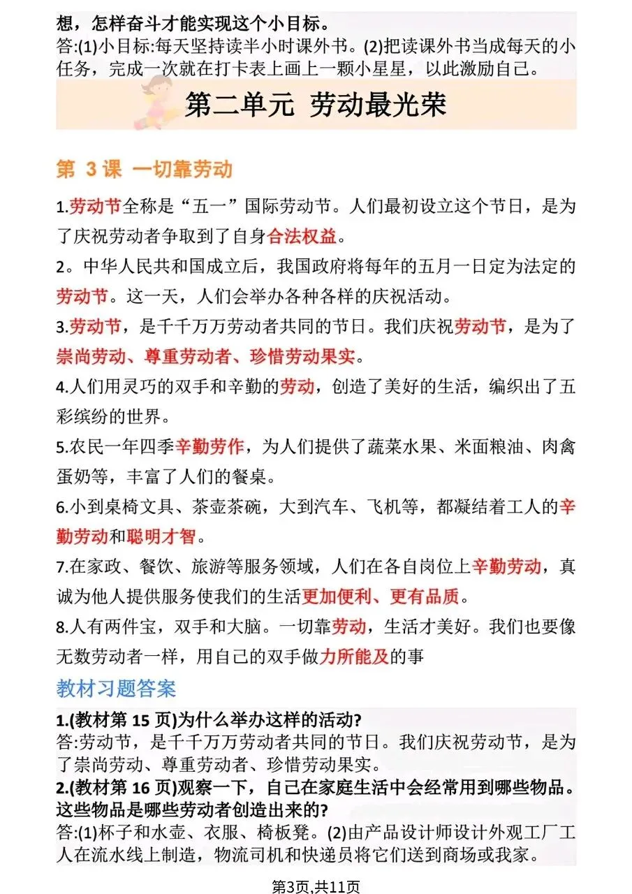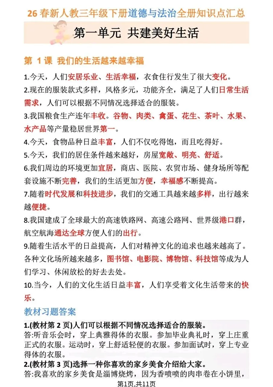 三下道德与法治全册知识点汇总