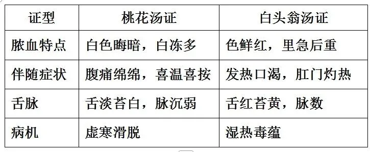 · 与热利便脓血(白头翁汤证)之鉴别:
