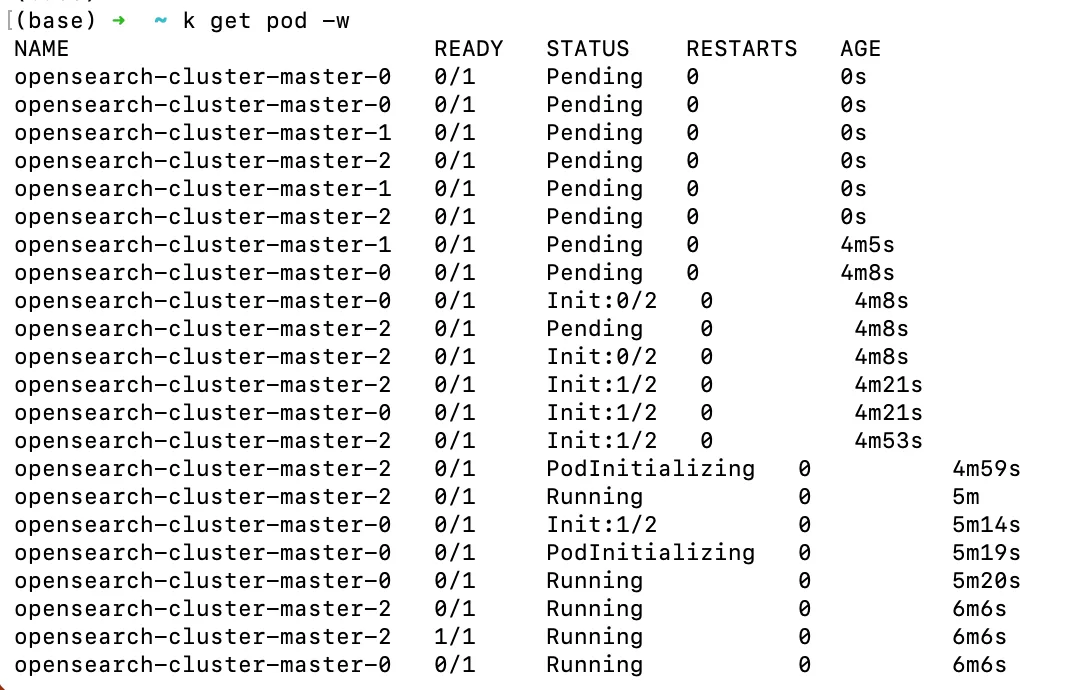 helm uninstall opensearchkubectl delete pvc -l app.kubernetes.io/name=opensearchhelm install opensearch opensearch/opensearch \ --set 'envFrom[0].secretRef.name=opensearch-admin-secret'