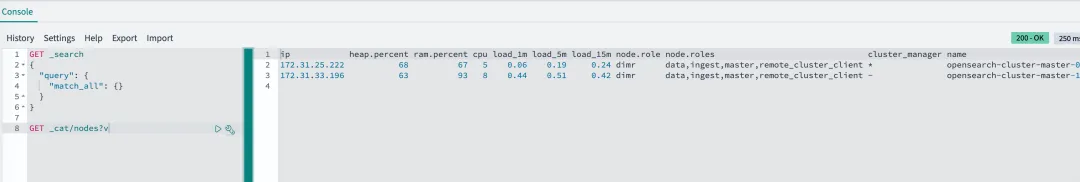 这样我们多节点的OpenSearch Cluster就启动好了,当然服务在pod里,我们如果想本地测试(因为EKS控制平面是托管的,我无法登陆),所以使用kubectl port-forward来进行转发,这样就可以把端口代理到本地。