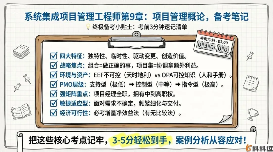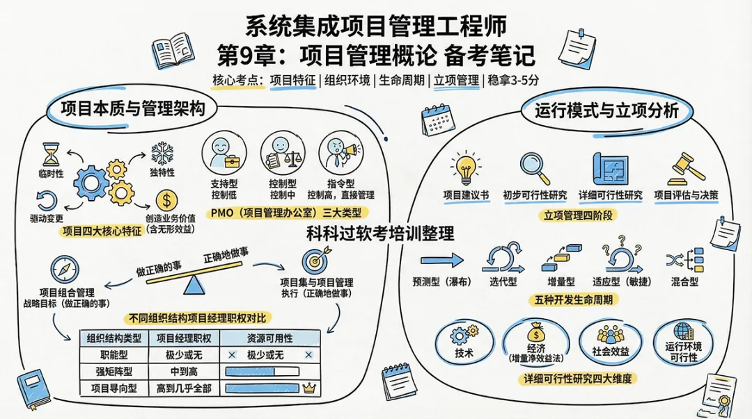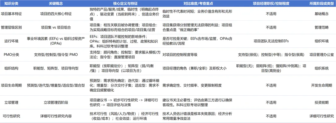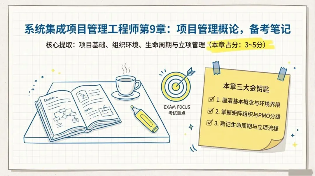 本章的重点内容主要集中在项目经理角色、PMO(项目管理办公室)、项目生命周期类型及立项管理等基础概念。今天,我们就来系统梳理这一章的核心知识点,助你稳拿基础分!