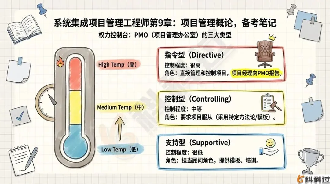 - PMO三大类型(支持型、控制型、指令型)及其控制程度