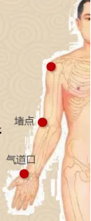 关节对应:肩关节——肘关节(堵点)——腕关节(气道口)。