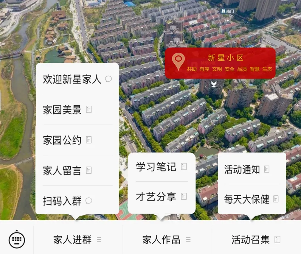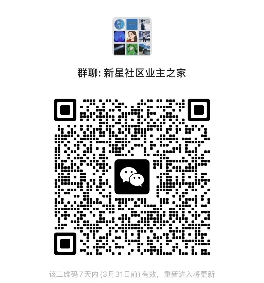 欢迎新星家人加入“业主之家”群,希望具有居家养老互助等方面技术专长(律师、物业管理、物业水电工程技术管理、项目管理、小区消防、园林绿化、卫生保洁、财务核算、工程施工、智慧社区、信息化、带货、酒店服务、社区饭堂)、保健理疗(针灸、推拿、把脉、自诊、八锻锦养生保健、金刚经长寿功)、文艺爱好特长(书画、摄影、短视频、插花、广场舞、茶道、宠物、化妆、表演、乐器、户外、活动组织)等才艺的业主踊跃加入,为业主之家献计献策、共建高质量文明社区……