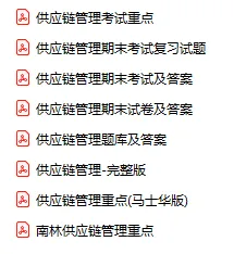 今天分享的资料是「编号-0267-供应链管理」电子版+学习笔记+知识点总结+期末考试重点+复习资料+习题集及答案+名词解释+历年真题试卷及答案+题库及答案+复习重点+思考题及参考答案+公式总结+考试重点基础题+知识总结+高清PDF可打印+免费分享!