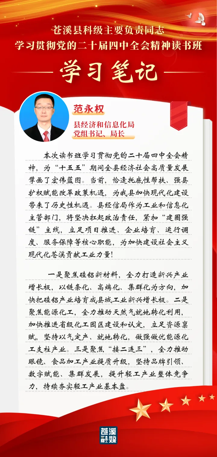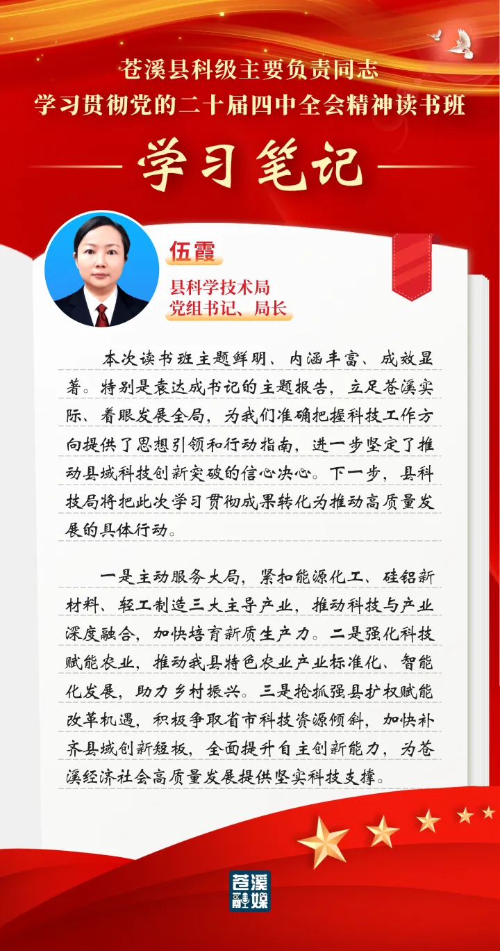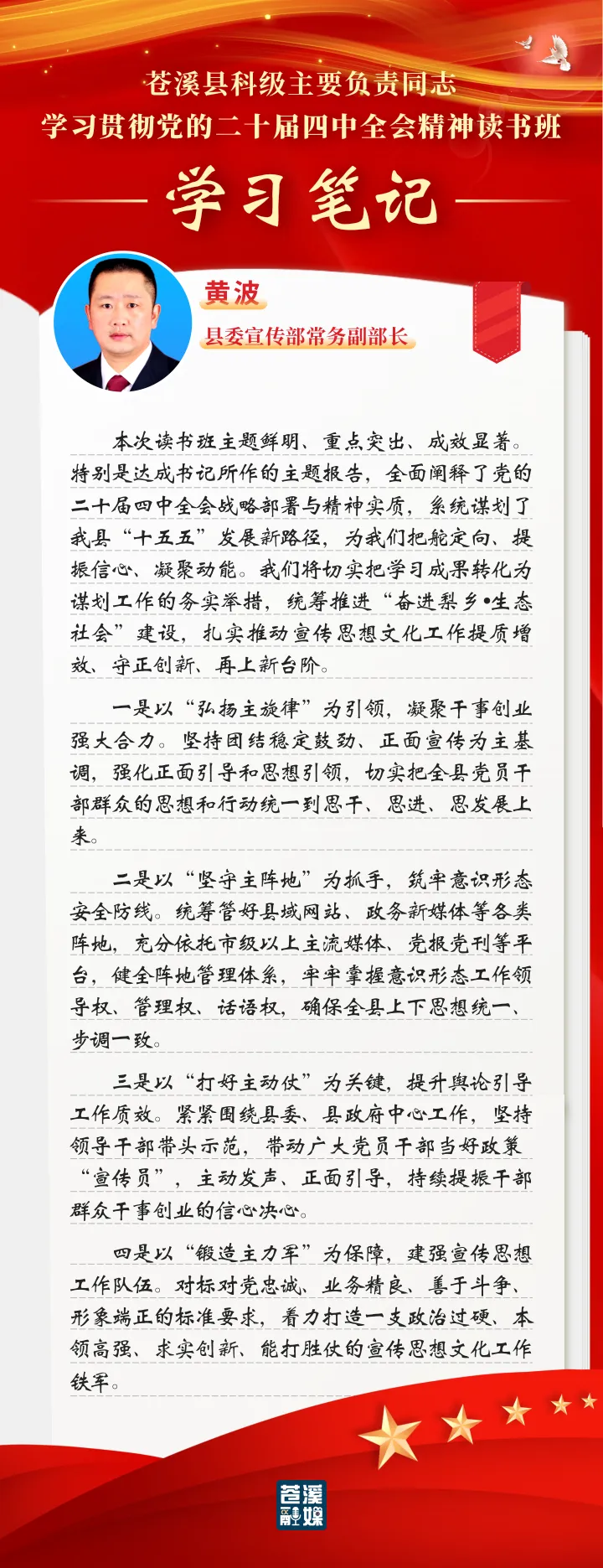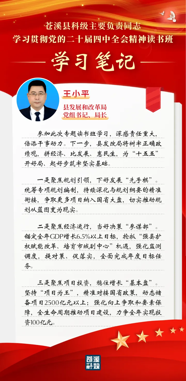 3月23日至3月26日,苍溪县科级主要负责同志学习贯彻党的二十届四中全会精神读书班举办。