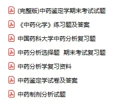 今天分享的资料是「编号-0282-中药分析学」电子版+学习笔记+知识点总结+期末考试重点+复习资料+习题集及答案+名词解释+历年真题试卷及答案+题库及答案+复习重点+思考题及参考答案+公式总结+考试重点基础题+知识总结+高清PDF可打印+免费分享!