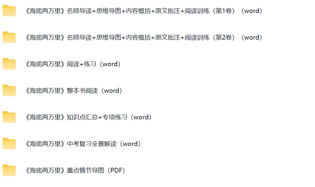 通过百度网盘分享的文件:《海底两万里》名师导读+思维导图+内容概括+原文批注+阅读训练(第2卷)(word)