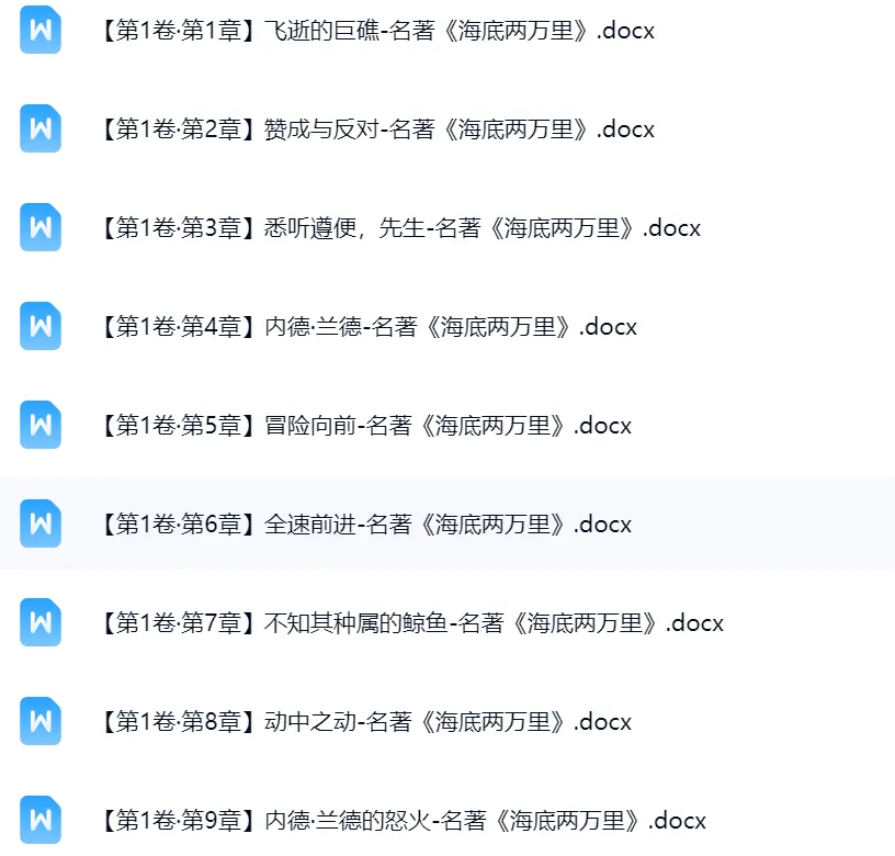 通过百度网盘分享的文件:《海底两万里》名师导读+思维导图+内容概括+原文批注+阅读训练(第1卷)(word)