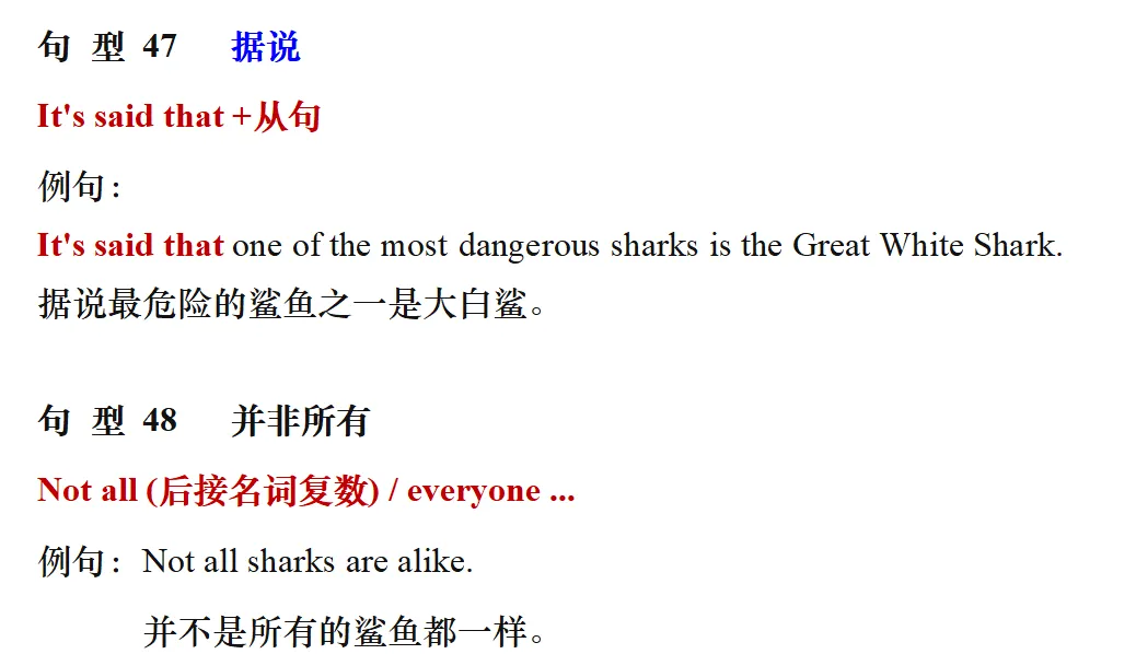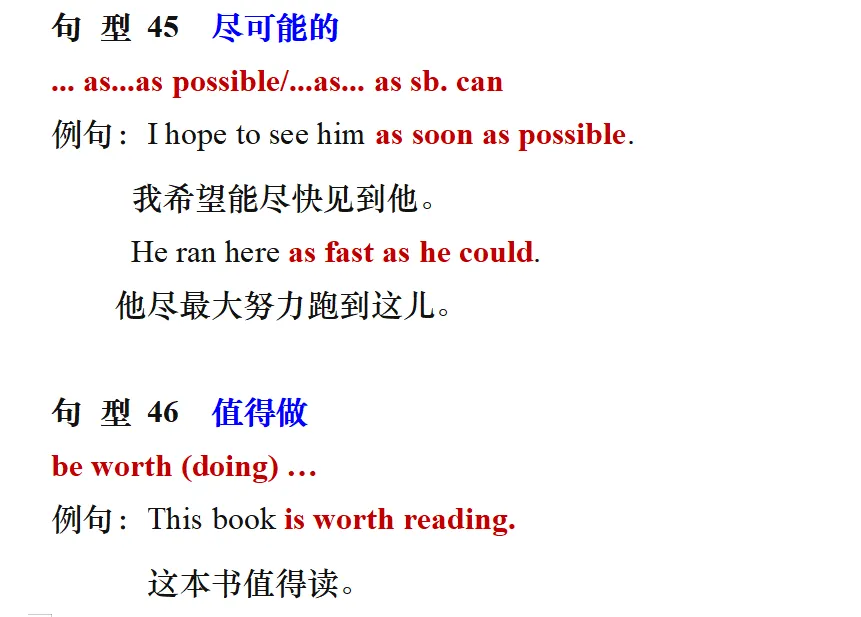 >【学习资料】中考冲刺-中学英语必考句型50个(五)
