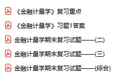 今天分享的资料是「编号-0254-金融计量学」电子版+学习笔记+知识点总结+期末考试重点+复习资料+习题集及答案+名词解释+历年真题试卷及答案+题库及答案+复习重点+思考题及参考答案+公式总结+考试重点基础题+知识总结+高清PDF可打印+免费分享!