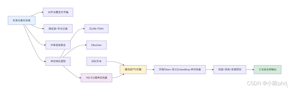 开源工具能满足基础的虚拟人声音制作需求,而工业级的虚拟人产品(如大厂数字人、真人IP数字分身、直播虚拟主播),对声音的复刻精度、情感表达、稳定性、适配性要求更高,需要一套标准化的落地方案。以下拆解工业界(如豆包、讯飞星火等)的虚拟人声音克隆与合成方案,以及核心的声纹识别模型。