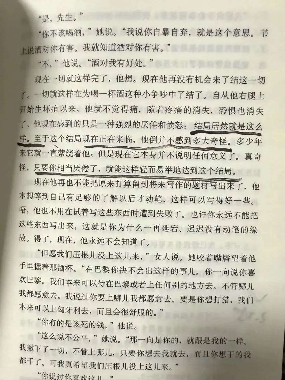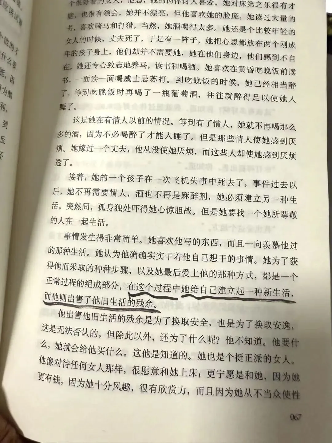 她说,那是像天鹅绒一样舒服的事情,是令人飘飘欲仙的事情,不过也不要过于相信,那也是一片沙漠,一件诱人犯罪、逼人发疯的坏事。