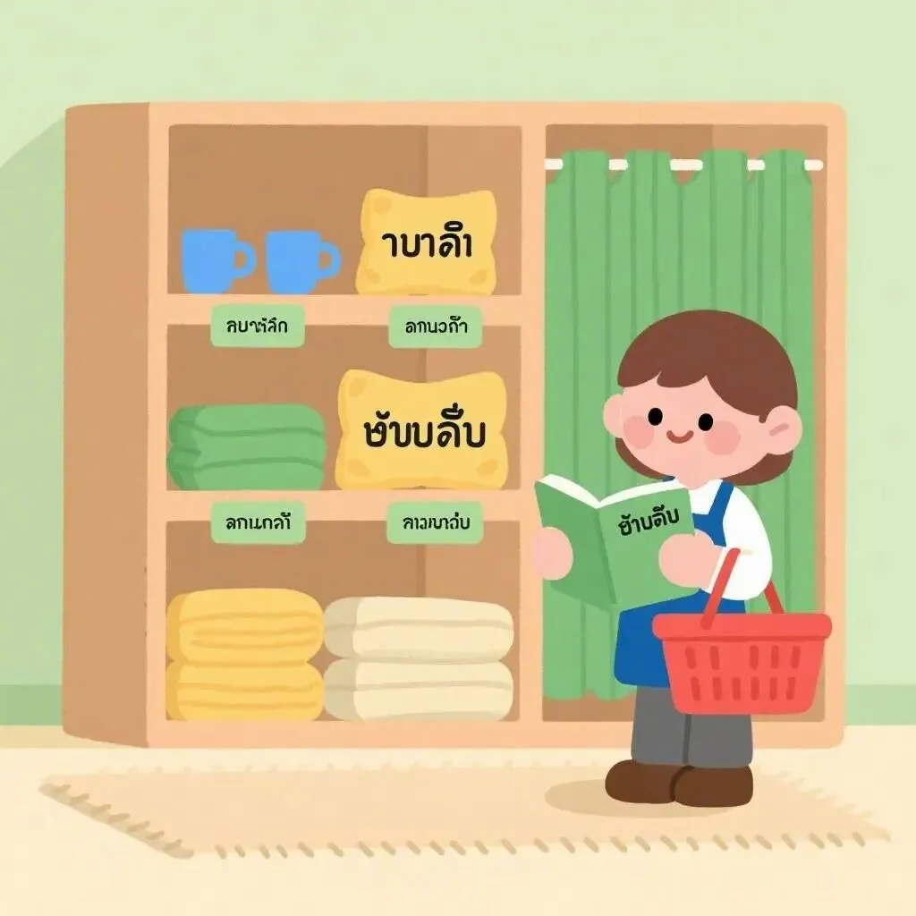 1. ไปซุปเปอร์มาร์เก็ตซื้อผ้าเช็ดจาน ค่ะ/ครับ (拜 su-per-maar-get 苏 pha chet chan 卡/克拉布)