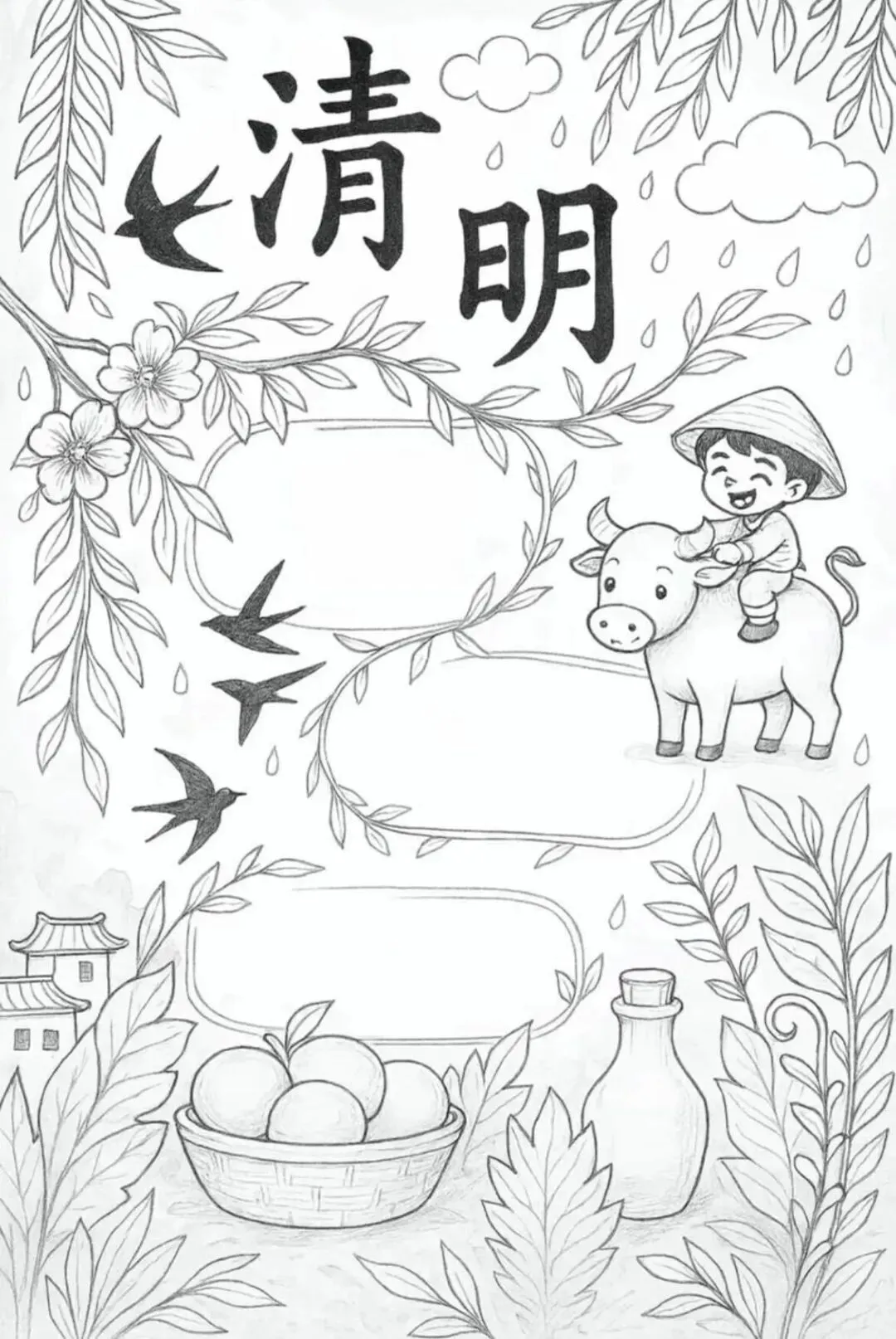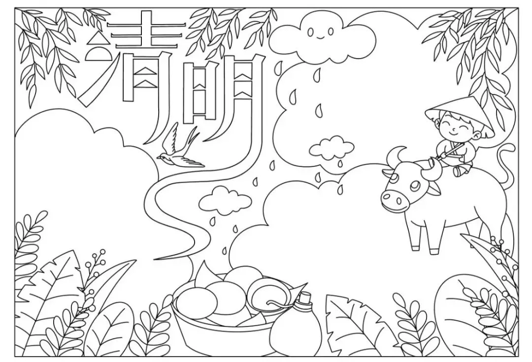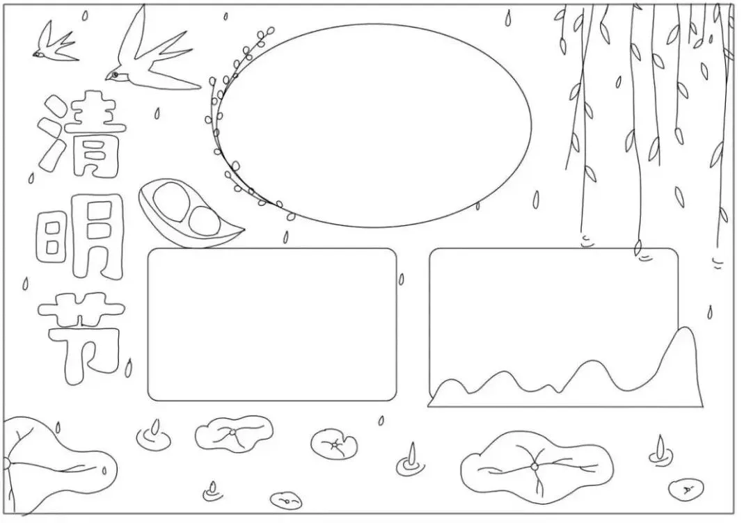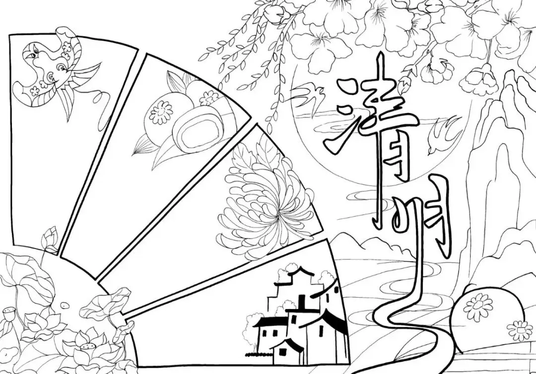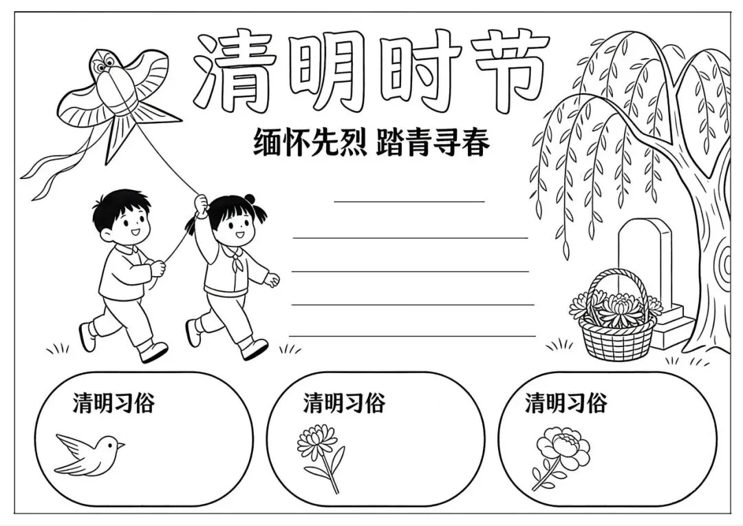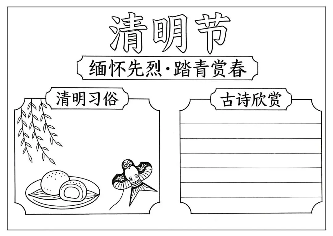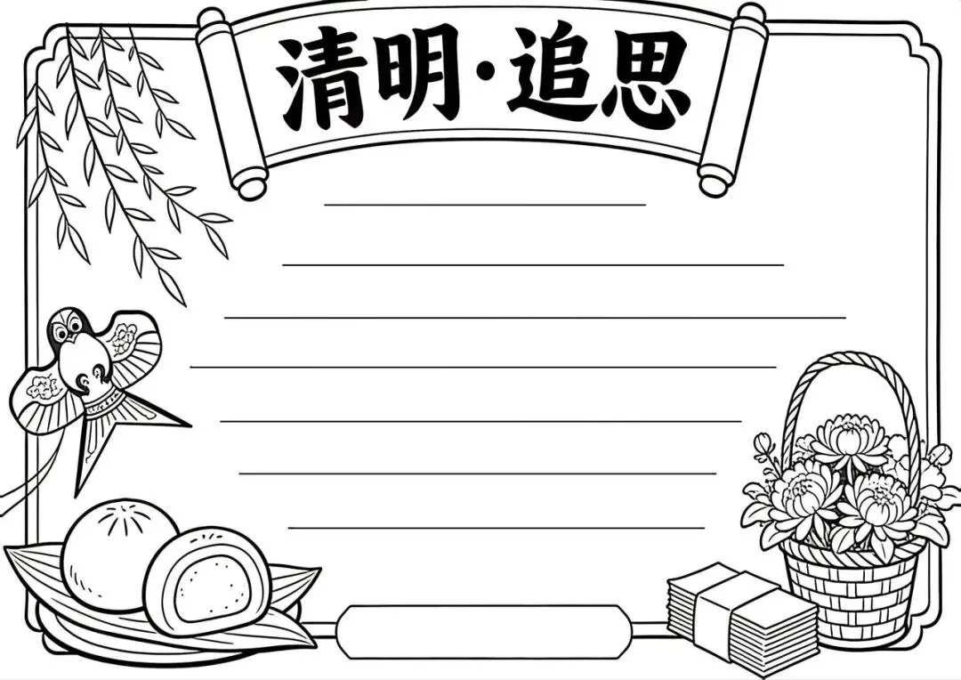 30张小学生清明节主题手抄报线稿素材,学习重在分享~(可下载)