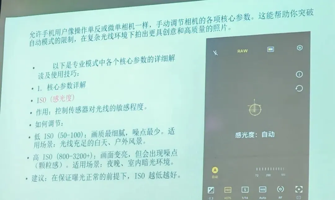 - 技巧:光线充足的室外,尽量用低ISO(100-200);光线昏暗的室内/夜晚,适度提高ISO,但不建议过高,避免照片模糊发灰。