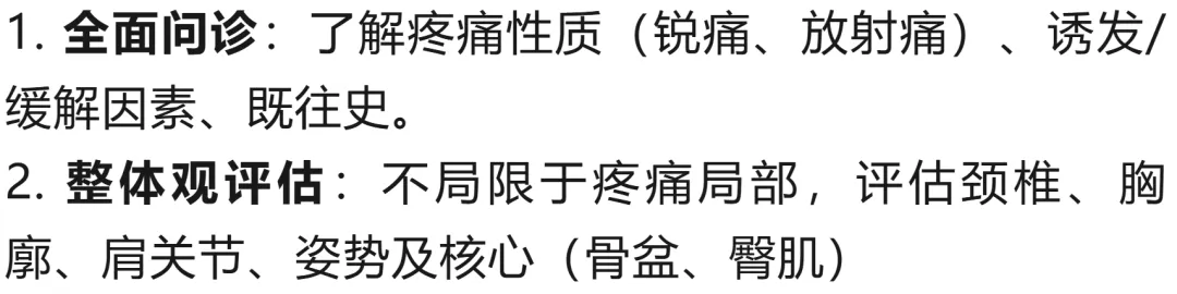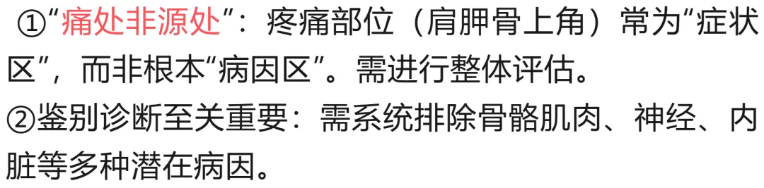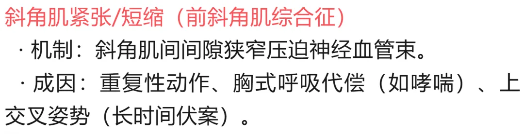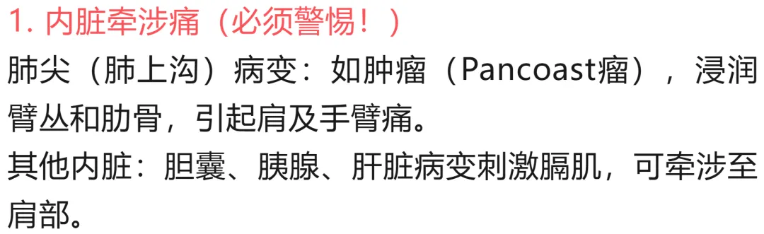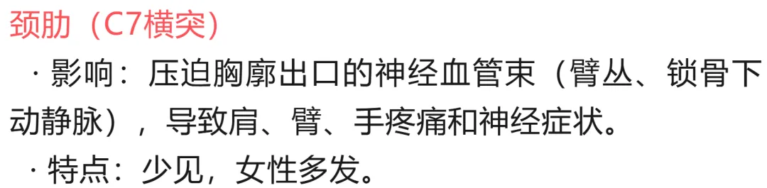 · 特点:常伴肩臂放射痛、锐痛、刺痛,咳嗽/打喷嚏加剧,或感觉异常(麻木)。