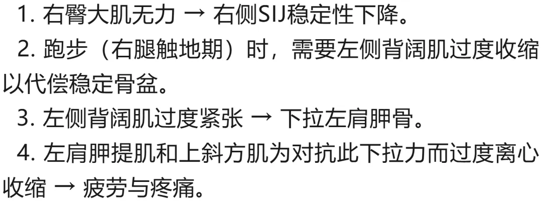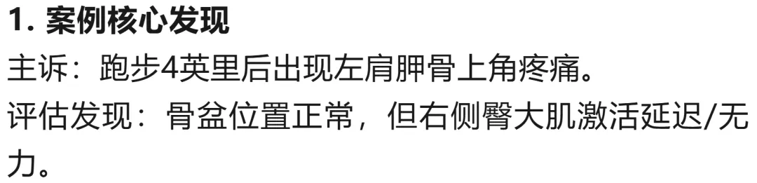 结果:臀大肌激活改善后,跑步相关肩痛消失。