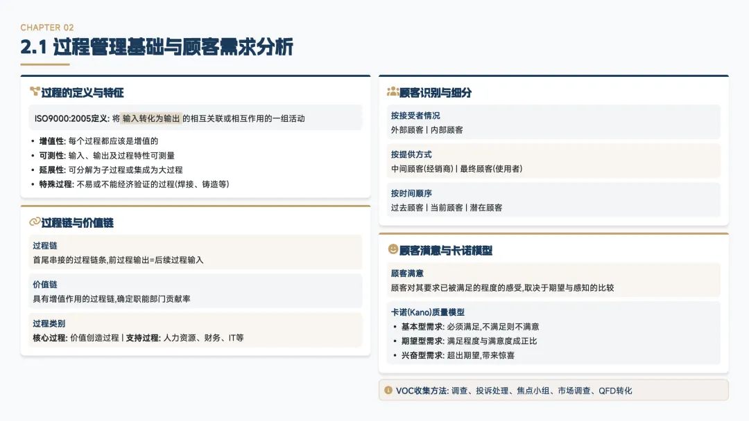 这一章是过程指标和顾客需求的结合区,不能只会算,还得知道这些指标在评价什么。重点看的是: