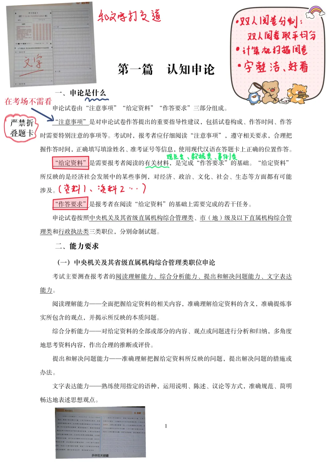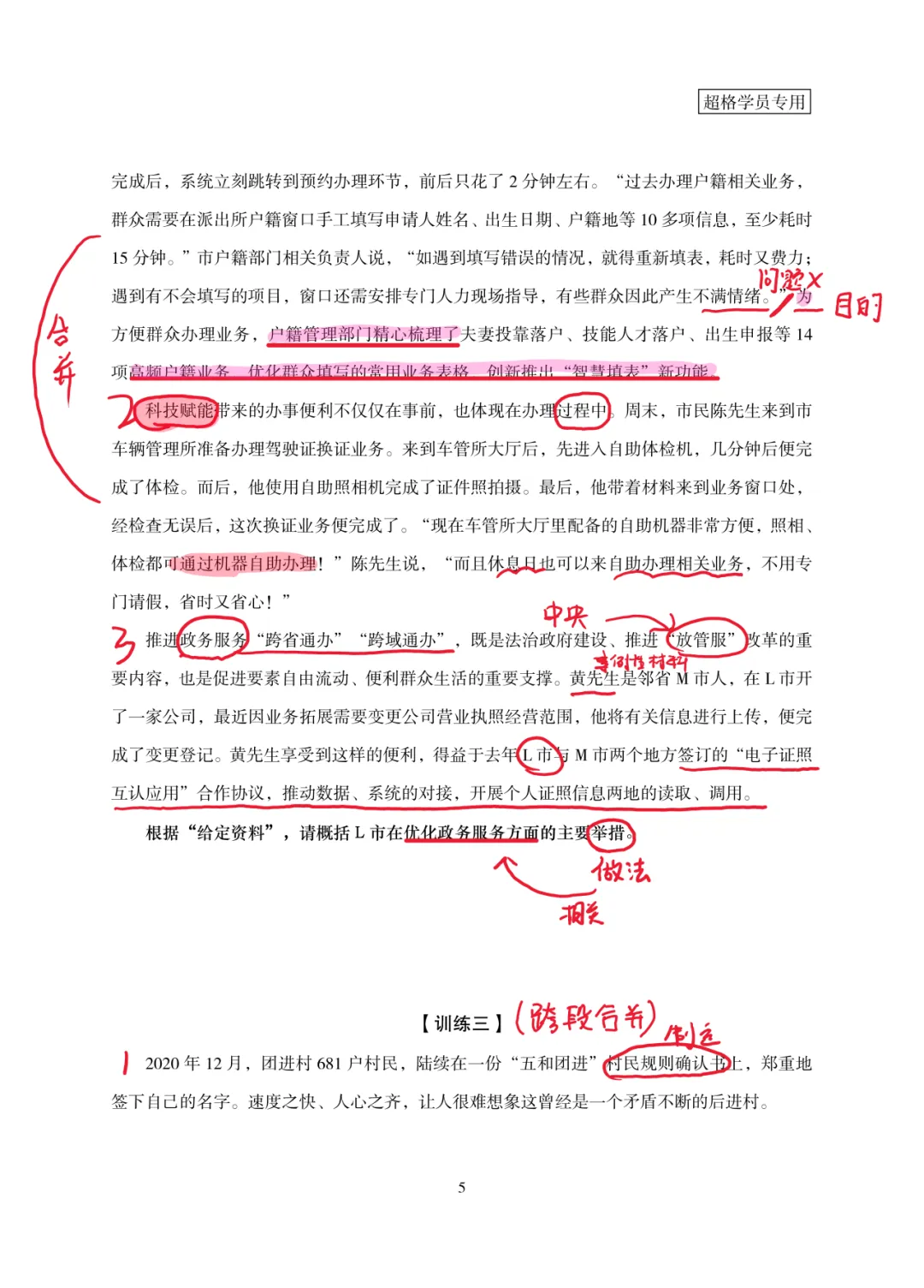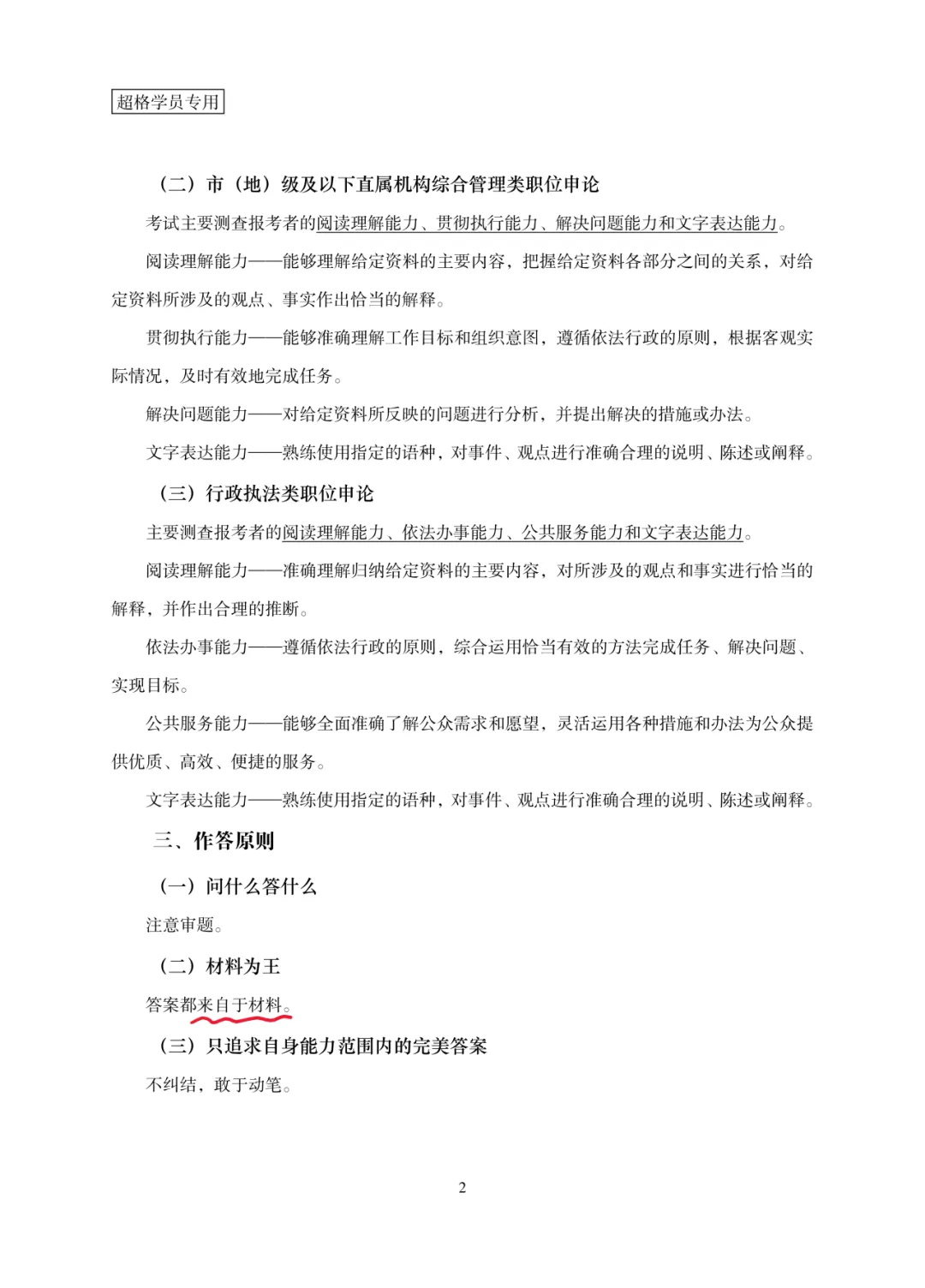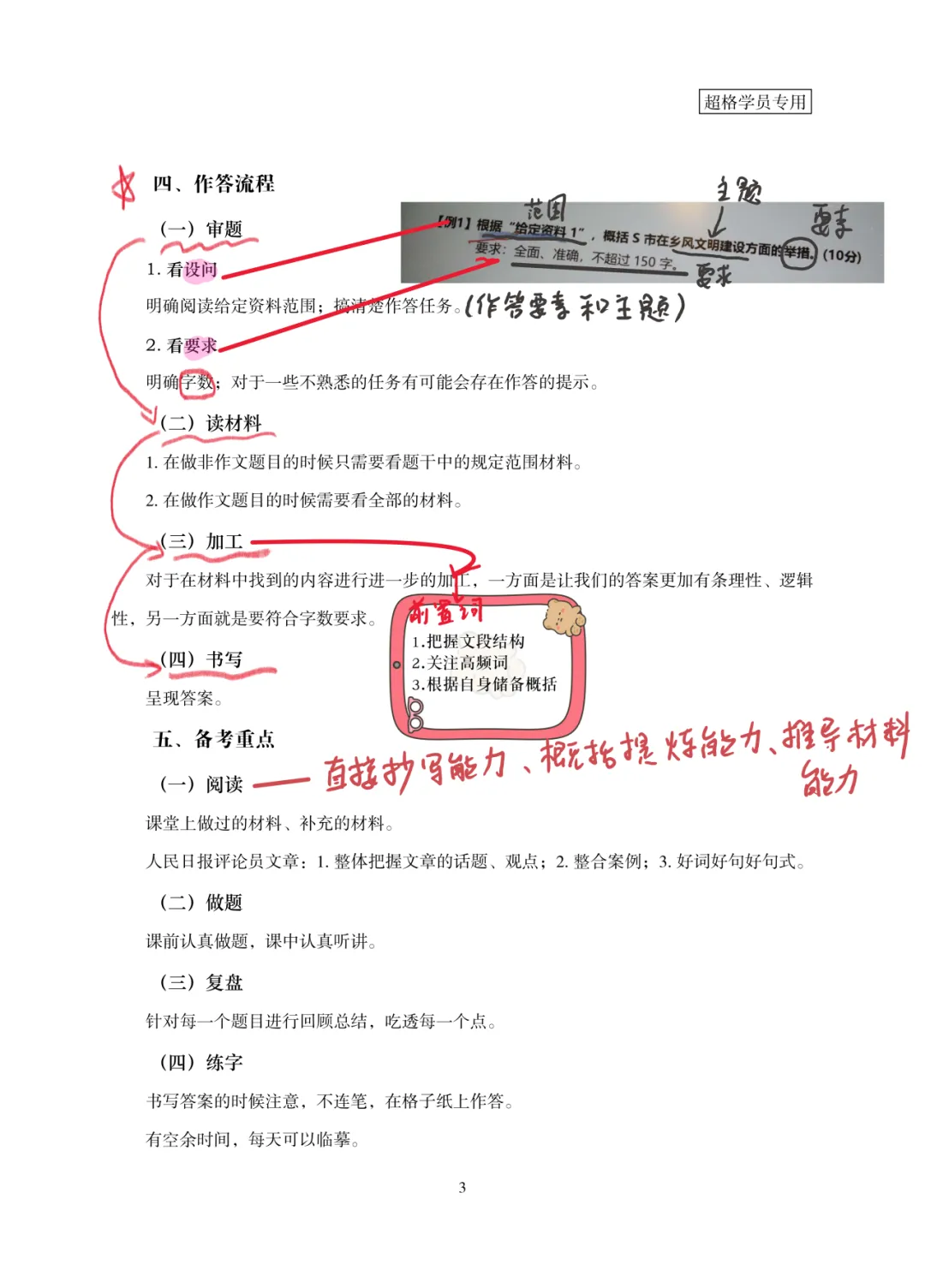 1.阅读能力:训练直接摘抄、概括提炼、材料推导能力;精读人民日报评论员文章,积累观点、案例、词句。