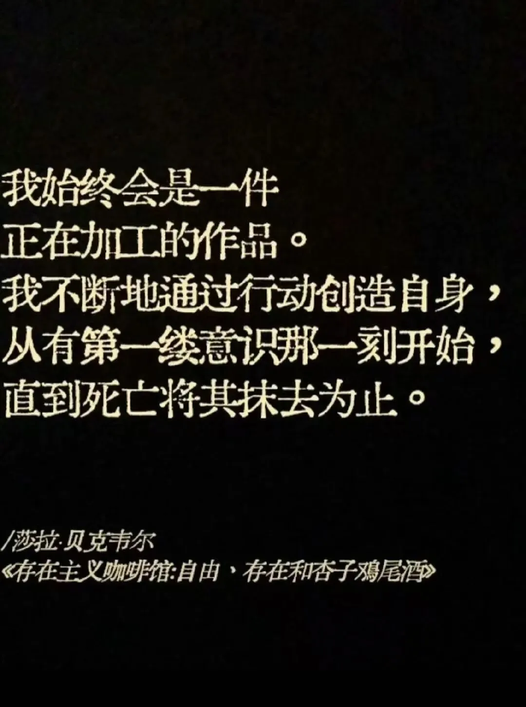 “倦意落在头顶,我写着写着就睡着了。第二天醒来,我有种一下子上了年纪的感觉。人生的后半程就此开始。如果用长跑打比方,自己现在恰好到了折返点。接下来要往出发点跑去。等我回到苦难的发源地,苦难一定会终结”