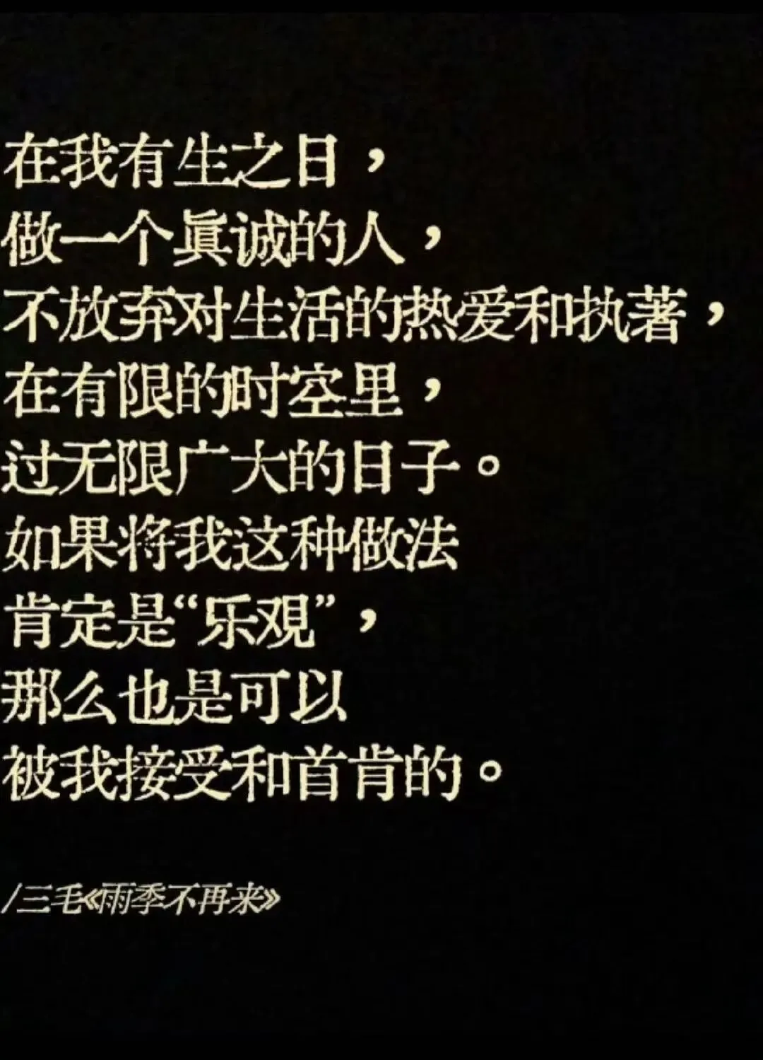 如今的我,谈不上幸福,也谈不上不幸。一切都会过去的。在所谓“人世间”摸爬滚打至今,我唯一愿意视为真理的就只有这一句话。一切都会过去的。
