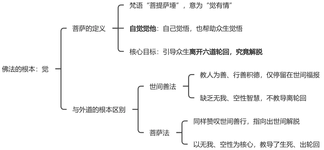 菩萨称为:觉有情。觉,既是自己觉悟,也帮助众生觉悟,是让众生离开六道轮回。