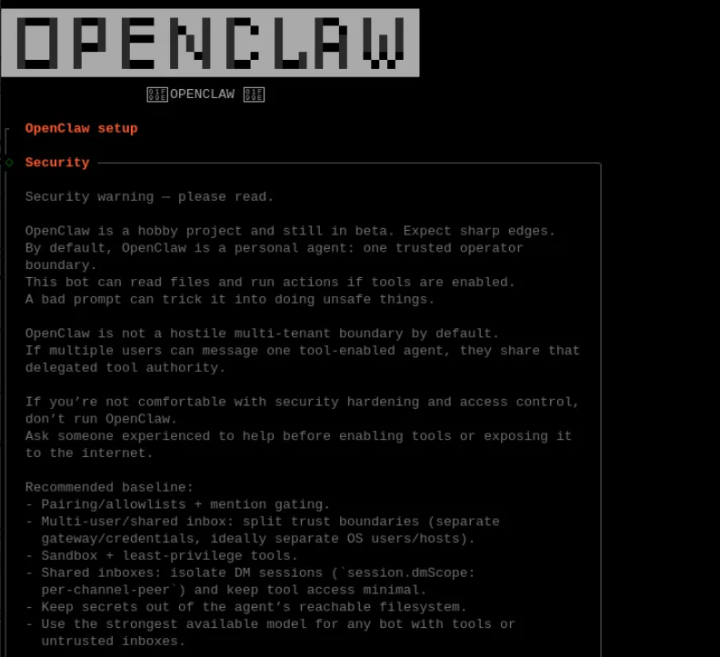 如果您不熟悉安全加固和访问控制,请不要运行 OpenClaw。 在启用工具或将其暴露于互联网之前,请咨询有经验的人员以获取帮助。