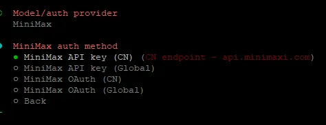 配置模型也很简单,以MiniMax 为例,空格键选择,回车键进入: