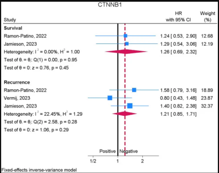 CTNNB1(β‑catenin):现有证据不足以证实 CTNNB1突变会增加NSMP 的复发或死亡风险