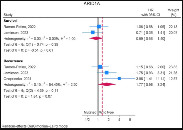 ARID1A:ARID1A 缺失与 NSMP 的复发或生存无显著相关