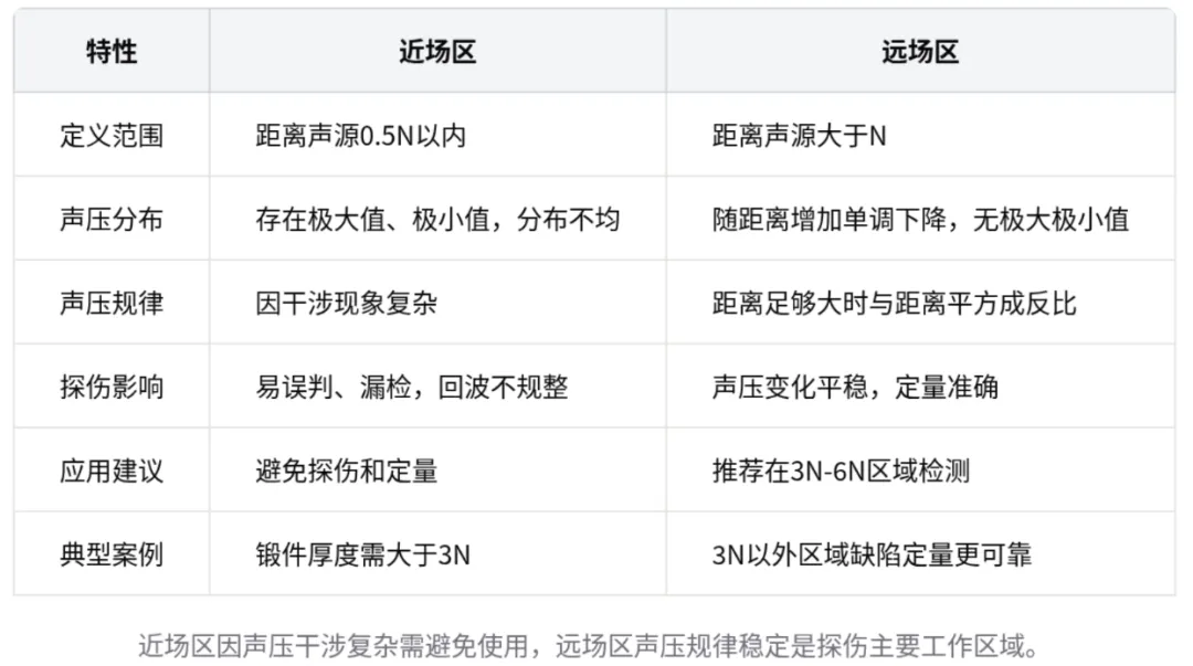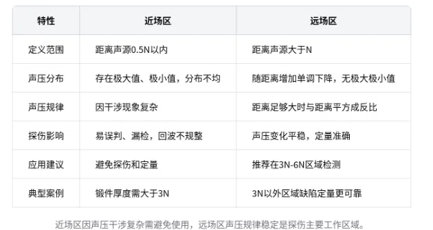 核心结论:超声波探伤必须避免在近场区进行定量检测,应选择合适探头确保检测区域在远场区,锻件检测要求厚度大于探头近场长度的3倍以上。