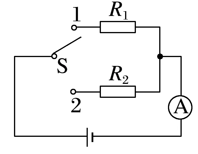 4.某同学利用如图所示的电路来探究闭合电路中总电流与电源电动势的关系,其中定值电阻R1=10 Ω、R2=8 Ω,电源的内阻r=2 Ω。当单刀双掷开关接1时电流表的示数为I1=0.2 A;则当单刀双掷开关接2时,电流表的示数I2为( )